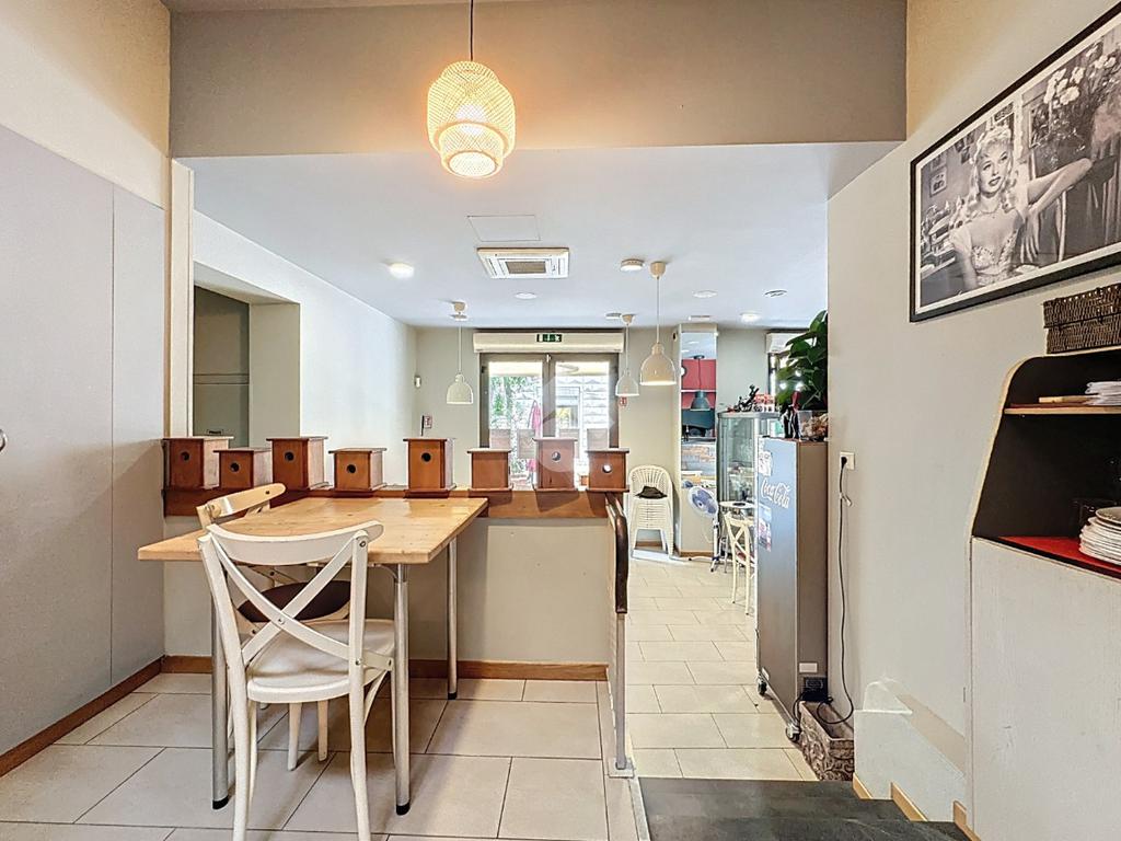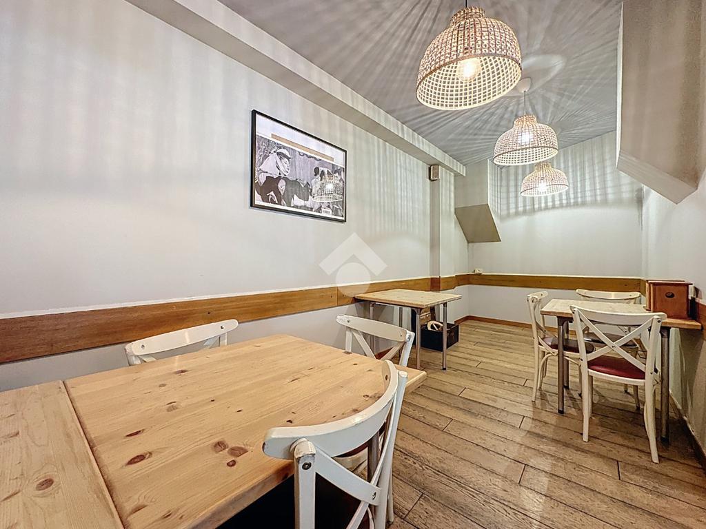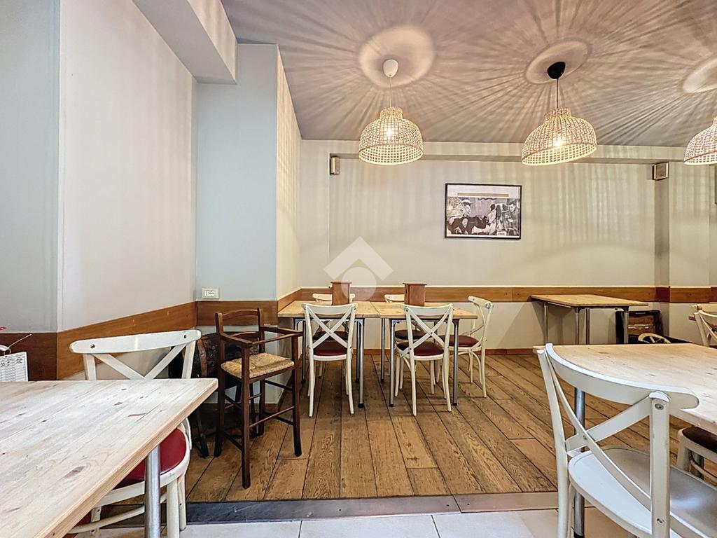 La sala principale è arredata con tavoli e sedie in quercia di alta qualità e ospita circa 50 coperti, distribuiti anche nella seconda saletta, raggiungibile tramite due gradini. Gli ambienti sono ben suddivisi e funzionali, con ripostiglio/spogliatoio separato e bagno di servizio e servizi igienici a norma per la clientela.