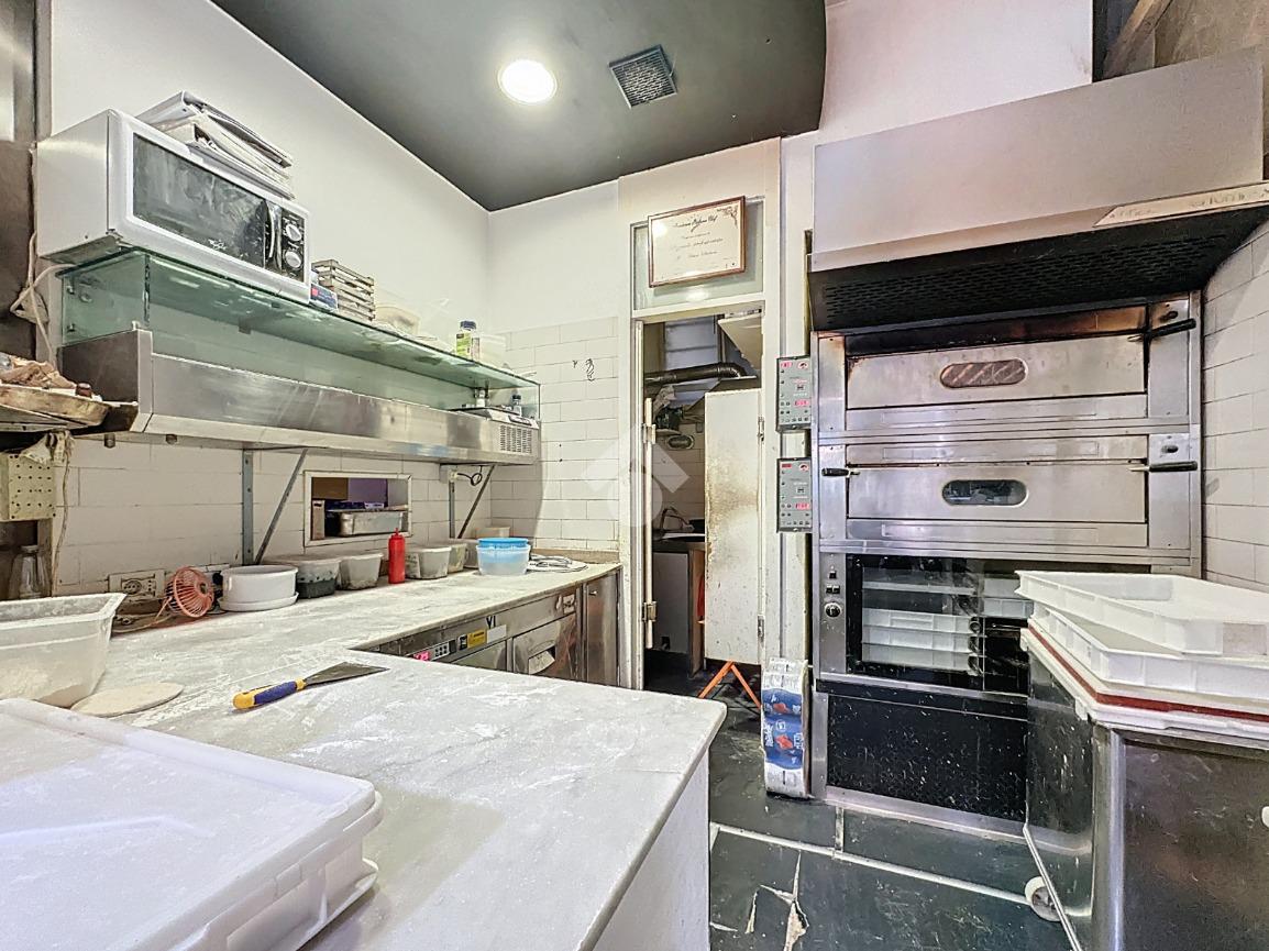 La parte operativa è ben attrezzata: il forno elettrico a due camere consente di cuocere fino a 7 pizze per volta per ciascuna camera, mentre il cucinotto è equipaggiato con tre piastre a induzione. Il bagno, recentemente rinnovato, è conforme alle normative e accessibile anche a persone con disabilità.